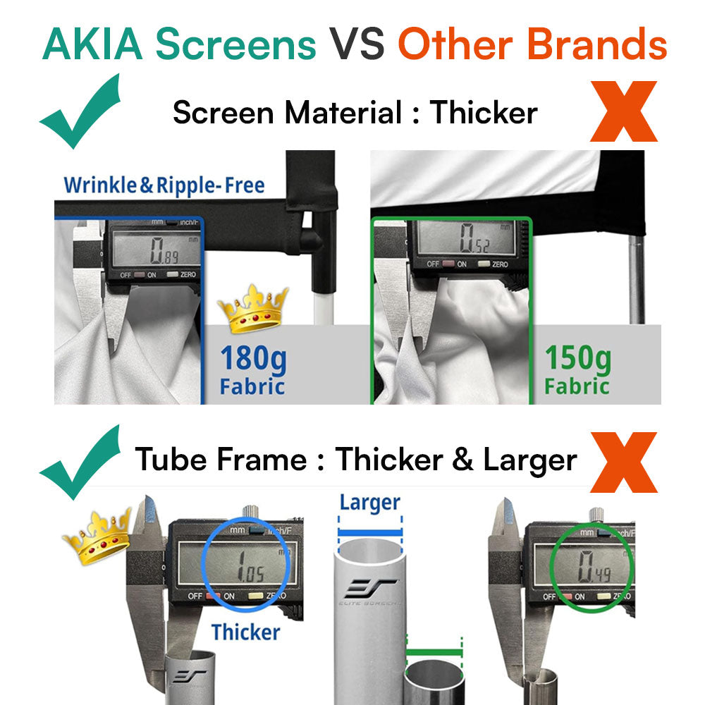 This appears to be the Elite Screens Yard Master Plus but with a 1.1 CineWhite screen instead of Elite Screen's 1.3 gain CineWhite UHD-B at a fraction of the price. What's funny is that I actually had the Elite Screens but the screen was a little too glossy and was causing laser speckle with my JMGO N1 Ultra so I had to "upgrade" to this one. I avoided it because I didn't recognize the name brand but it is absolutely every bit as high quality as my previous screen and actually suits my needs better by completely mitigating the laser speckle issue I was having! A+!!