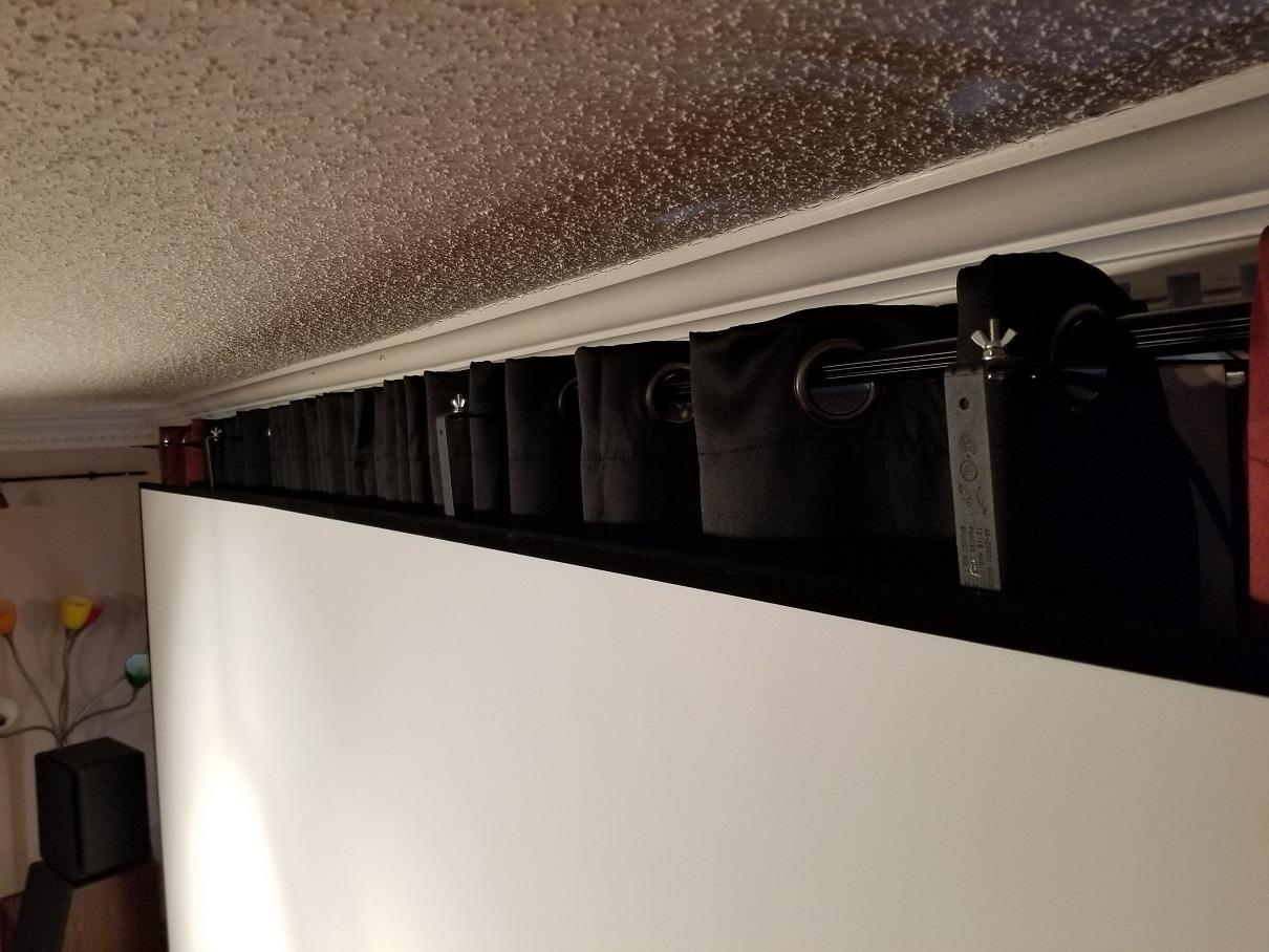 I am very pleased with the final result of the 125-inch fixed frame series AKIA screen. I was able to fully assemble the screen alone. I originally was concerned that the screen material would not stretch over the frame, and was certain that I was sent the wrong size screen. I contacted customer support by phone and was given encouragement that convinced me to continue. I reviewed several videos on assembly of these type of screens that use springs and slowly but surely was able to complete the process.My setup may be different than most. I basically did a ceiling mount (Actually floated from L brackets), so the frame is about 8 inches from my wall. This was needed as I had 2 windows behind my wall that would limit the size of the screen. Previously I had a 82 inch custom build projection screen that fit between the 2 windows on the wall. I always wanted to go much bigger on the screen but originally felt that would not be possible. Here is what I finally did:I added 6 L-brackets to the top of my wall. Four of the brackets would be to support the screen using the supplied Wall Brackets. (The directions tell you to use 2 of the brackets for the top and 2 of the brackets for the bottom. I changed this and placed all 4 of the wall brackets on the top.I purchased a large curtain rod from Amazon that was adjustable from 120 to 170 inches. This Rod was simply supported on the top of the 6 L-Brackets. I also purchased 8 Theater Grade Extreme 100% Blackout Grommet Curtain Panels, 52” x 95”. 6 of the panels were black and for the ends, I used 2 red panels. This took care of blacking out the background from the 2 windows, and I was now able to have full light control in the room.I was able to make 4 custom metal bracket adapters that I painted flat black, which allowed me to mount the screen to the L-Bracket and wall mounting brackets to float the screen. Wire or other mounting options would have worked here as well.The screen had a tendency to angle in toward the wall slightly. For this reason, I placed 2 additional L-Brackets at the bottom of the screen hitting the Frame so that the screen was now perfectly vertical. The curtain panels completely hide all brackets and the screen has a nice floating look.I am considering adding 2 4x4 blocks cut to size from floor to the bottom of the screen to relieve any pressure on the bottom of the screen. In all honesty, I am not sure this is even needed as the frame this screen is supported on is very heavy duty, and I doubt any sagging would occur over time.Overall, I am very happy with how this has turned out and I believe the screen is of exceptional quality and a very good product. The only issues I had are as follows:Tension Rods: Horizontal rods, were fine with proper overlap. The 2 Vertical rods were too short. The rod length just matched the length of the outside holes of the fabric. This result on one of the sides tearing through the mounting hole. I ended up having to purchase 2 brass rods of the same diameter to get some overlap for the springs to attach to the frame.While nowhere in the manual is this mentioned, I found it much easier to mount the screens with the spring oriented in a certain direction. One end of the spring seems to make a perfect half circle (Better for tension rod), and the other end, is less angled, and that end seems to more easily mount to the metal frame. Also, I found that in many cases it was easier to first start the spring by attaching it to the frame, and then pull it over through the tension rod hole.The supplied Allen wrench was not of the greatest quality. It was starting to strip as I was tightening the screws. I switched to a much higher quality Allen wrench I had, which greatly improved my ability to tighten down all screws without slippage or striping.Overall, I am very pleased with the result. It is a bit of work, and my fingers are still a bit numb from stretching the springs into position, but the supplied tool does get the job done.