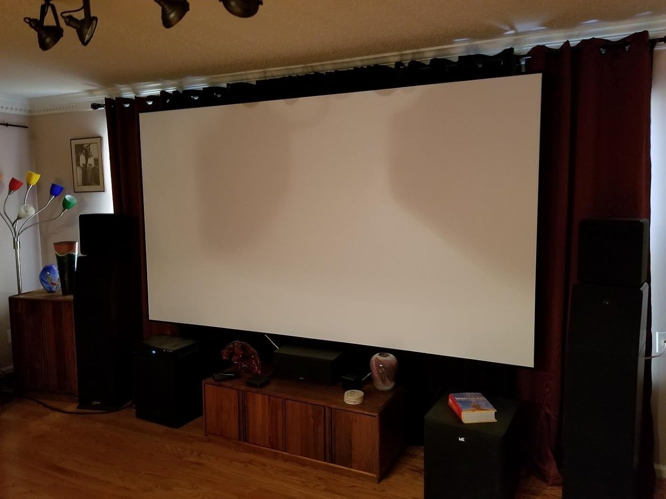 I replaced a motorized 120" screen with this 145" monster from Akia Screens and I regret nothing! I almost went with the 125" screen from Akia, but after measuring the different image sizes and projecting them onto my wall, it was clear that bigger is MUCH better! This screen is over 10 feet wide and almost 6 feet tall! The packaging could have been sturdier, but there was no damage to the box contents, and assembly went quicker than I expected. You'll need an extra set of hands to hang the screen on your wall, but the screen weighs less than 40 pounds so it's very manageable. The instructions said the lighting kit would not fit, but I added LED lighting around the perimeter by screwing 90 degree drywall corner protectors onto the back of the screen and offsetting the hangers to allow extra space in the back of the screen. I used 32.8 feet of Govee RGBIC LED strips which fit perfectly without cutting, and I think it really looks fantastic! This CINEWHITE screen is ideal for my light-controlled basement but if you can't control the light in your room then you may need one of the Ambient Light Rejecting screens to prevent washout (hence the 4-star rating). My BENQ W1070 projector is only 1080P and 2000 lumens, but the picture on the screen is sharp and bright, and 3D movies look almost as good as in the theater. Overall I could not be happier with my purchase!
