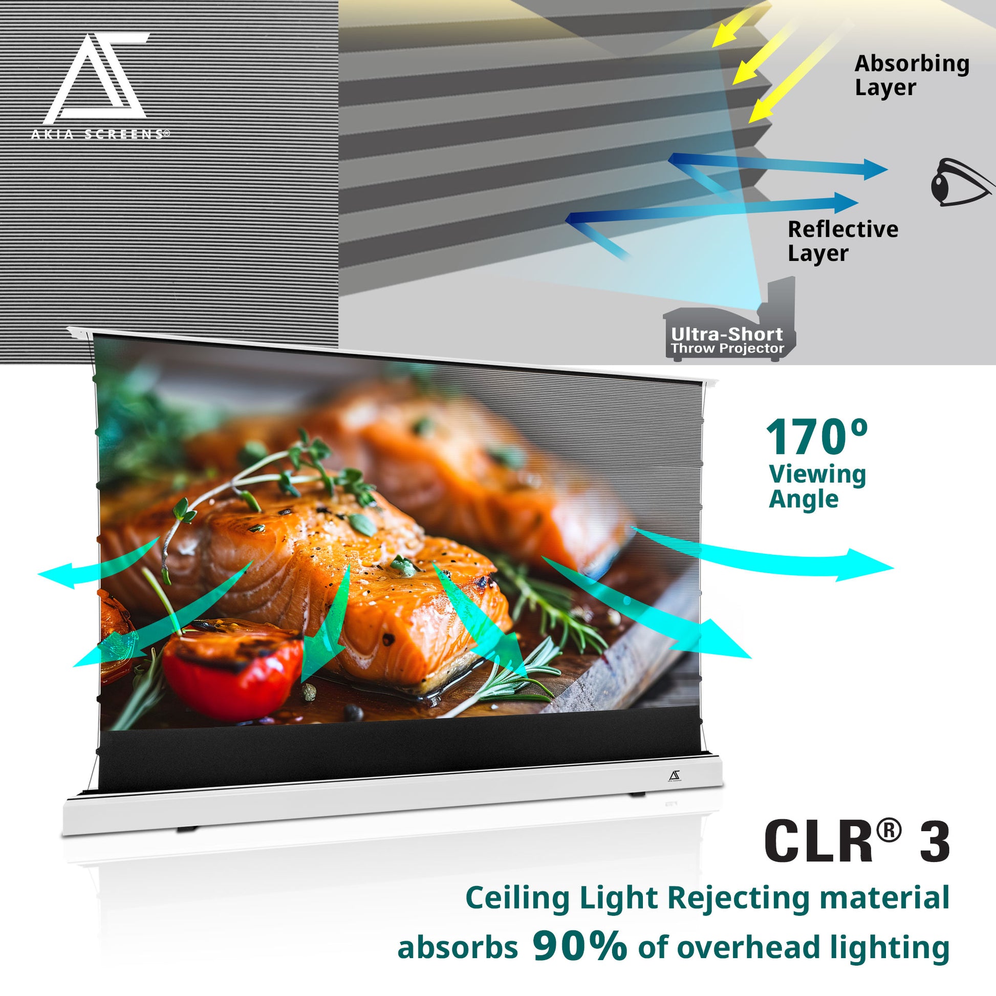 - Dedicated reflective and absorbent layers maximize projector performance in ambient light room environments